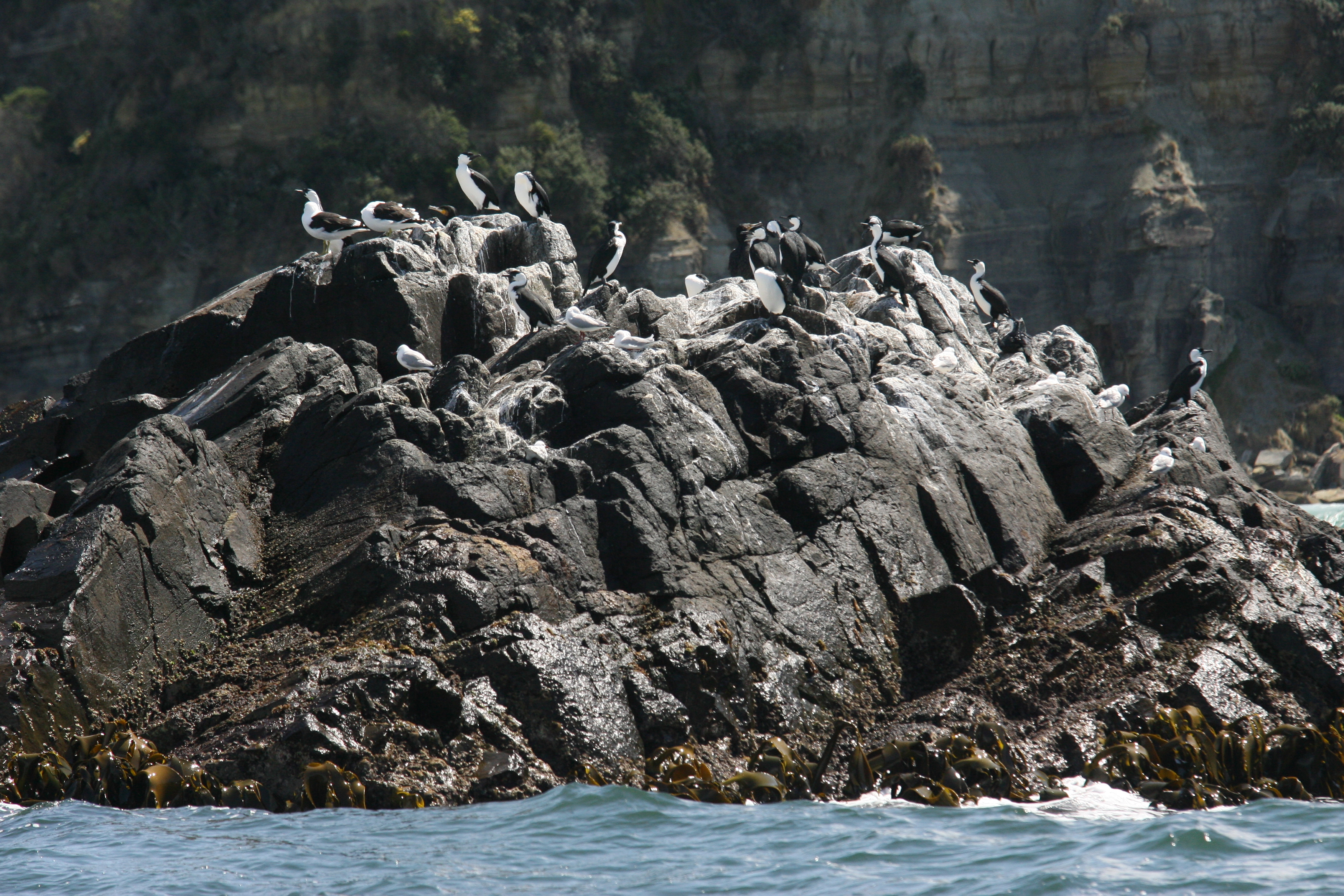 Shearwaters sunning themselves on this rocky outcrop off the southern tip of Bruny Island. Picture: PBull-Media