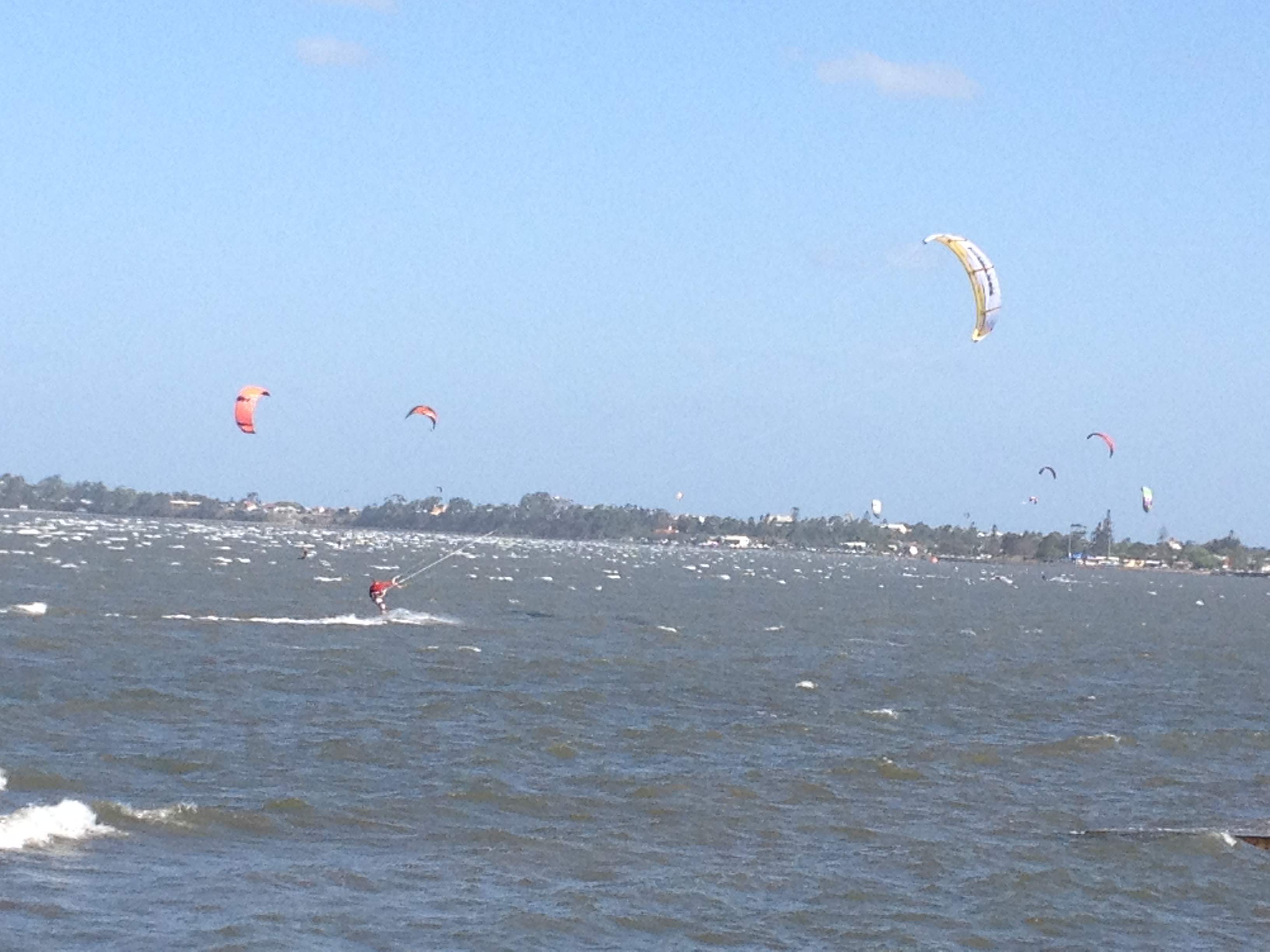 And over this weekend there have been plenty of 15-25 knot winds along the shores of Bramble Bay – especially the stretch between Brighton and Sandgate on the northern outskirts of Brisbane – to delight power kite devotees.